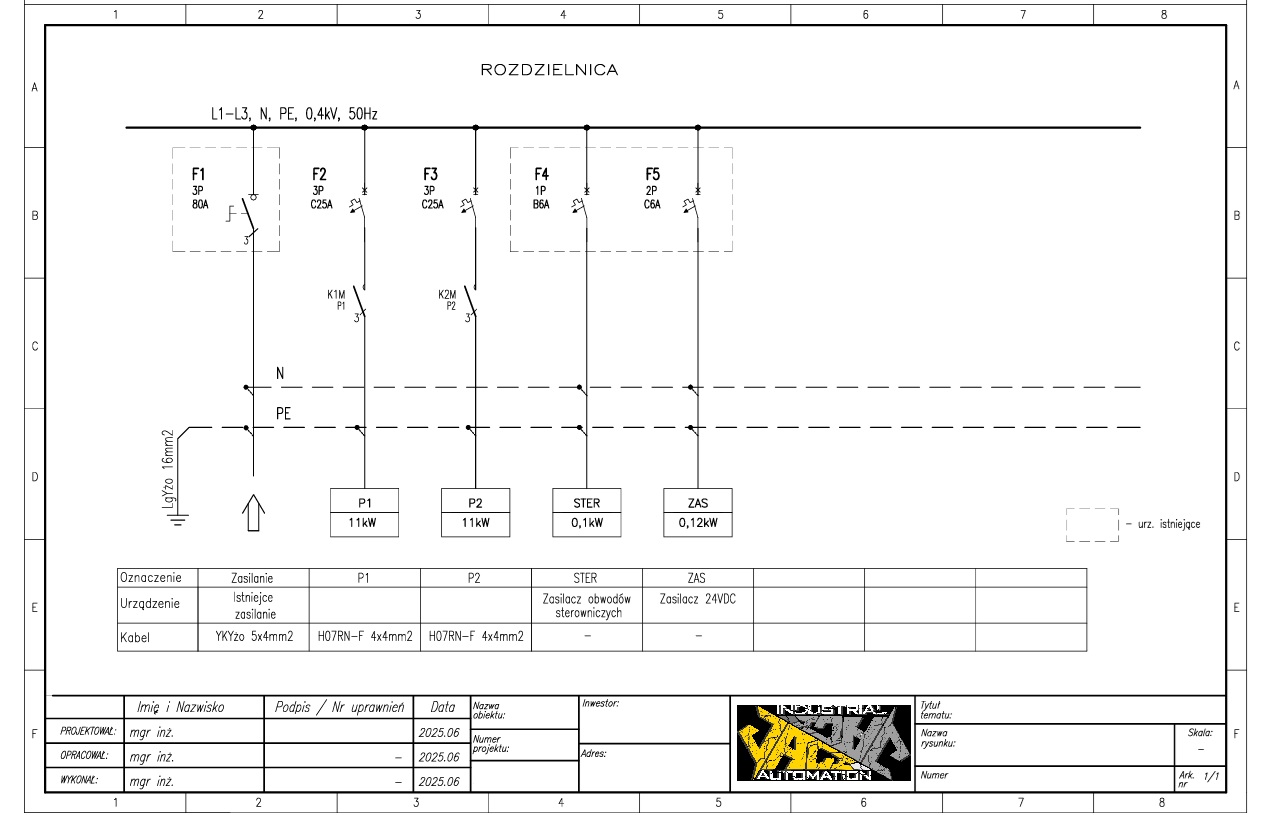 Projektujemy instalacje elektryczne i układy sterowania na niskim jak i średnim napięciu, przygotowujemy kompletną dokumentację projektową oraz wykonujemy prefabrykację szaf sterowniczych, zapewniając spójność projektu, bezpieczeństwo i gotowość do integracji z automatyką.